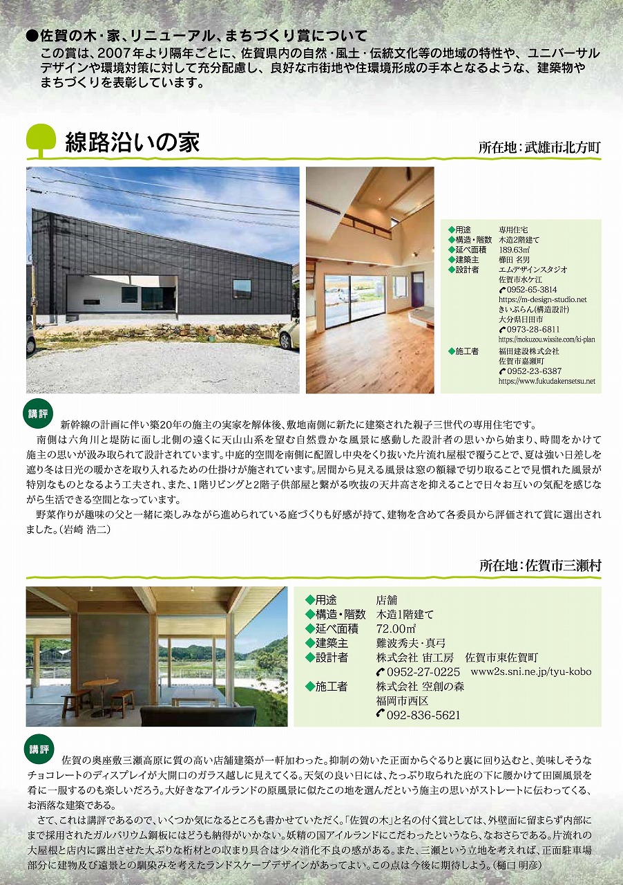 2019年 第7回佐賀の木・家、リニューアル・まちづくり賞の受賞作品